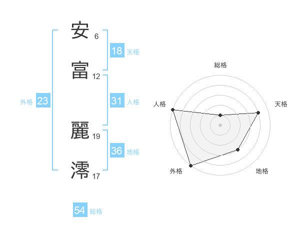 安富 麗澪さんの外格は23画の5点!
