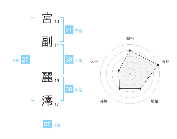 宮副 麗澪さんの総格は57画の4点!