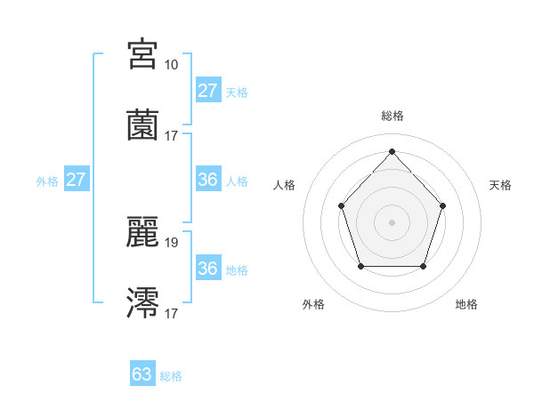 宮薗 麗澪さんの総格は63画の4点!