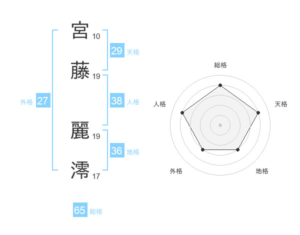 宮藤 麗澪さんの総格は65画の4点!