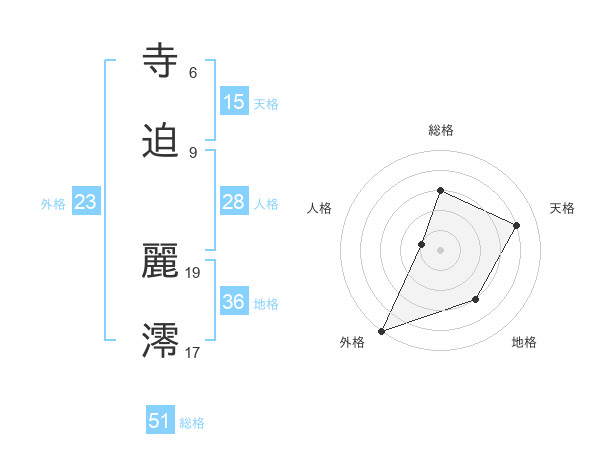 寺迫 麗澪さんの総格は51画の3点!