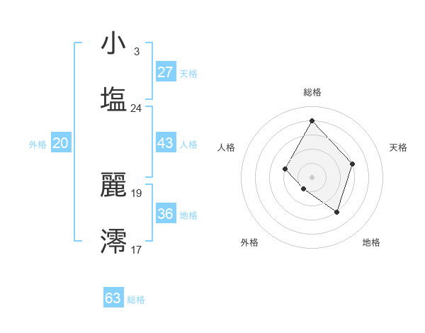 小塩 麗澪さんの天格は27画の3点!