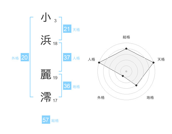 小浜 麗澪さんの天格は21画の5点!