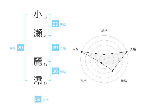小瀬 麗澪さんの天格は23画の5点!