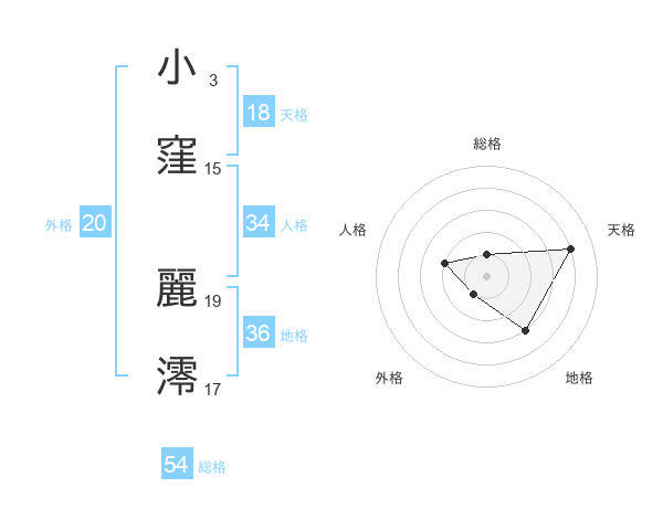 小窪 麗澪さんの天格は18画の4点!