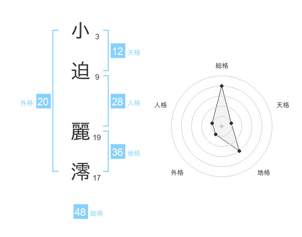 小迫 麗澪さんの総格は48画の4点!