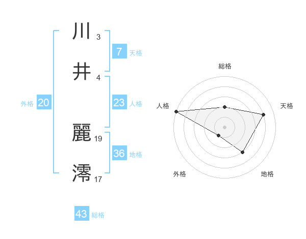 川井 麗澪さんを姓名の画数から五運を鑑定