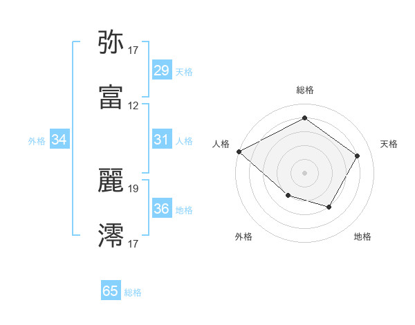 弥富 麗澪さんの総格は65画の4点!