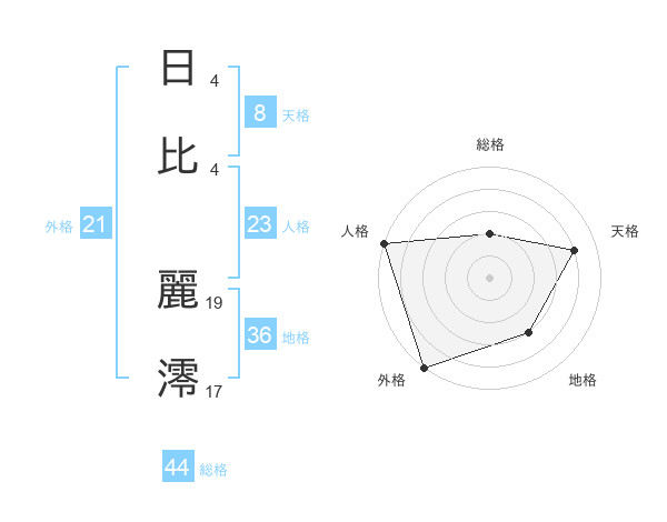 日比 麗澪さんの天格は8画の4点!