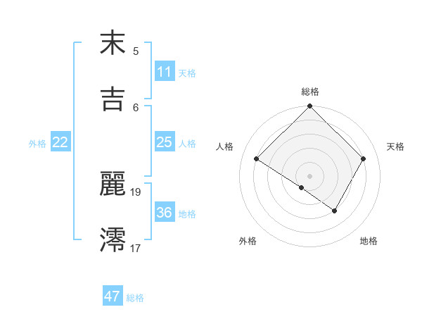 末吉 麗澪さんの総格は47画の5点!