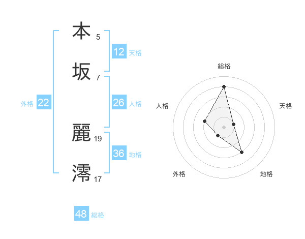 本坂 麗澪さんの天格は12画の1点!