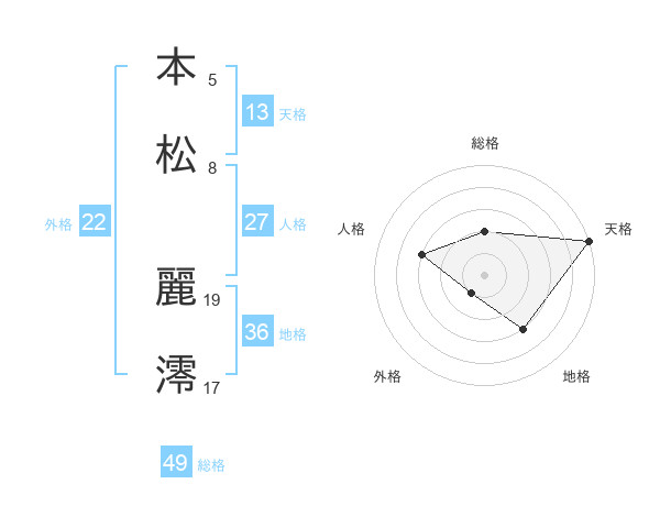 本松 麗澪さんを姓名の画数から五運を鑑定