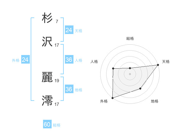 杉沢 麗澪さんの天格は24画の5点!