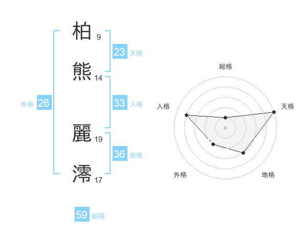 柏熊 麗澪さんの総格は59画の1点!