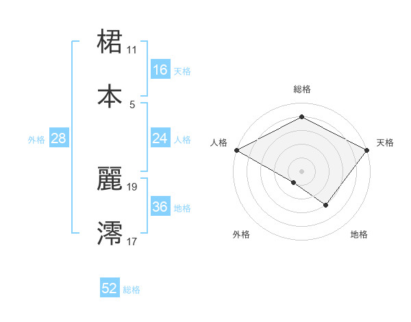 桾本 麗澪さんの総格は52画の4点!
