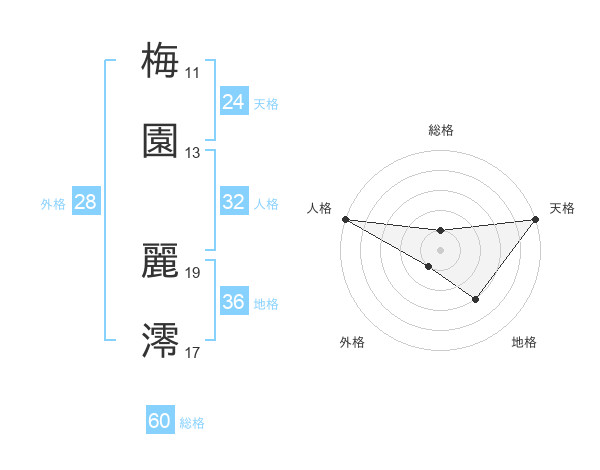 梅園 麗澪さんの天格は24画の5点!