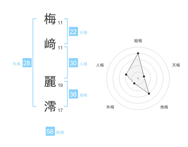 梅﨑 麗澪さんを姓名の画数から五運を鑑定