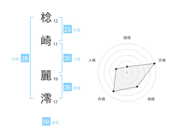 棯崎 麗澪さんの総格は59画の1点!