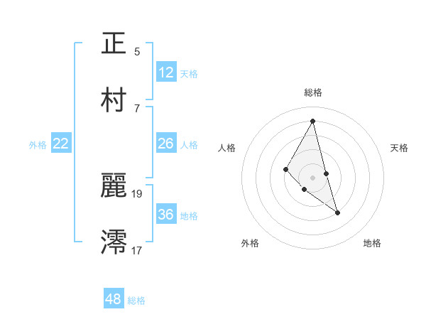 正村 麗澪さんの総格は48画の4点!