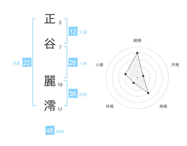 正谷 麗澪さんの総格は48画の4点!