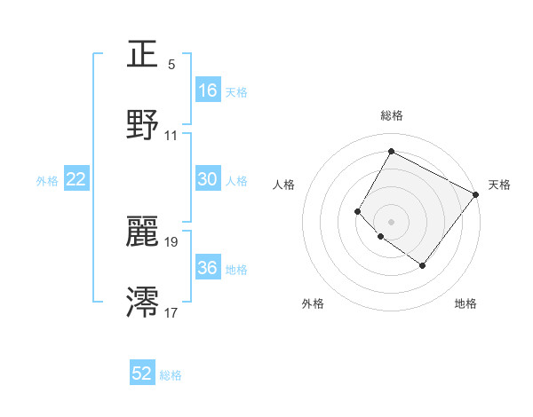 正野 麗澪さんの天格は16画の5点!