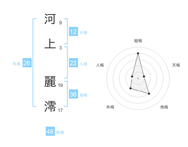 河上 麗澪さんを姓名の画数から五運を鑑定