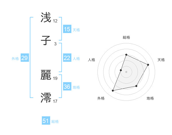 浅子 麗澪さんの総格は51画の3点!