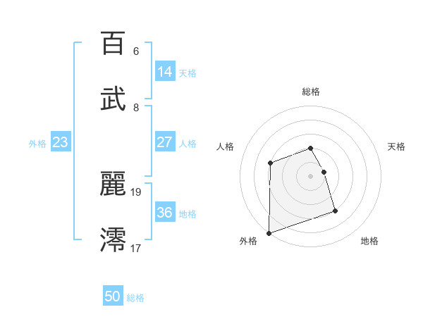 百武 麗澪さんを姓名の画数から五運を鑑定