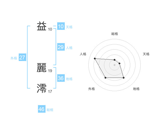 益 麗澪さんの外格は27画の3点!