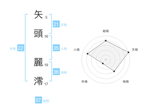 矢頭 麗澪さんの外格は22画の1点!