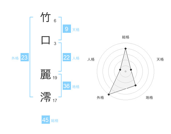 竹口 麗澪さんの外格は23画の5点!