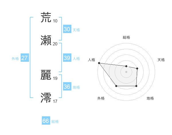 荒瀬 麗澪さんの人格は39画の5点!
