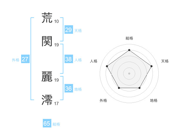荒関 麗澪さんの総格は65画の4点!