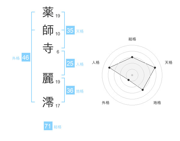 薬師寺 麗澪さんの総格は71画の3点!