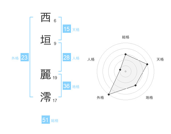 西垣 麗澪さんを姓名の画数から五運を鑑定