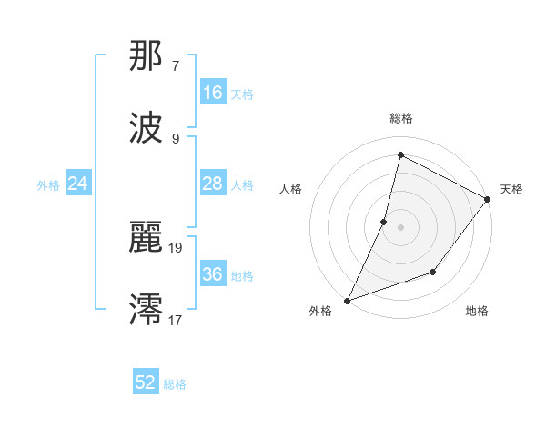 那波 麗澪さんの総格は52画の4点!