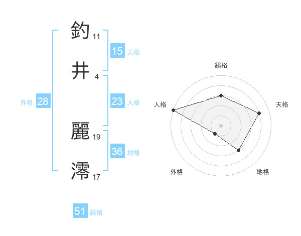 釣井 麗澪さんの総格は51画の3点!