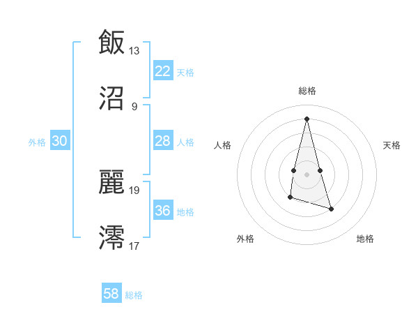 飯沼 麗澪さんの総格は58画の4点!