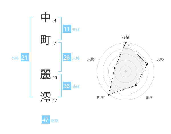 中町 麗澪さんを姓名の画数から五運を鑑定
