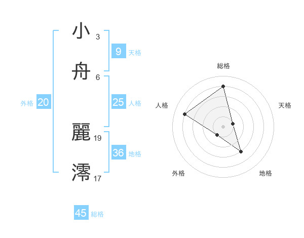 小舟 麗澪さんの総格は45画の4点