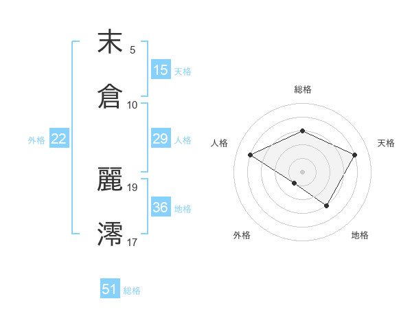 末倉 麗澪さんを姓名の画数から五運を鑑定