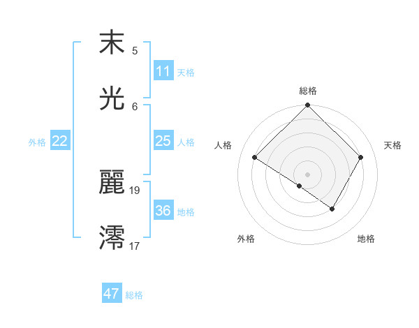 末光 麗澪さんの総格は47画の5点!