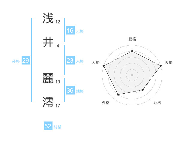 浅井 麗澪さんの天格は16画の5点!