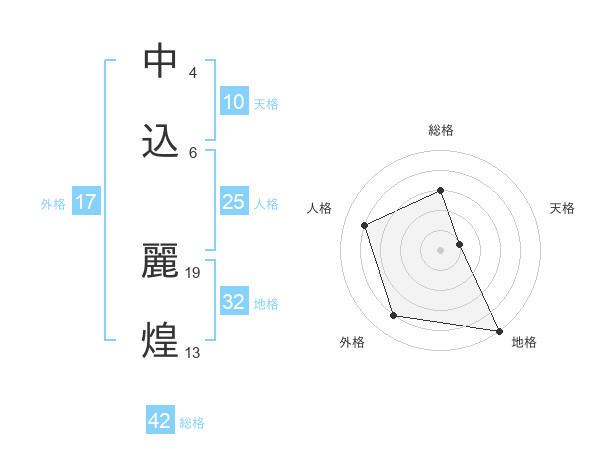 中込 麗煌さんを姓名の画数から五運を鑑定