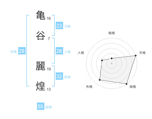 亀谷 麗煌さんの総格は55画の1点!