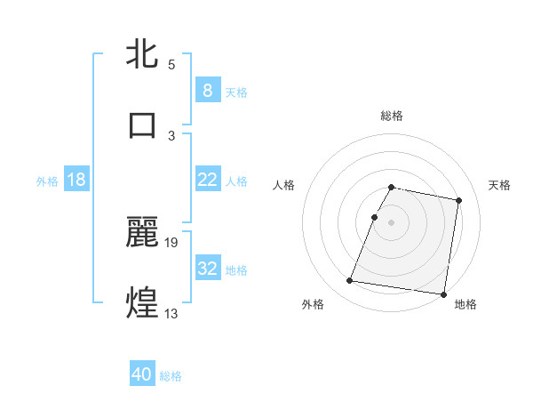 北口 麗煌さんの総格は40画の2点!