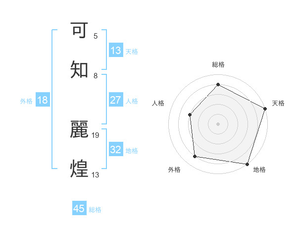 可知 麗煌さんの総格は45画の4点!