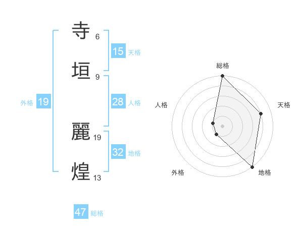 寺垣 麗煌さんを姓名の画数から五運を鑑定