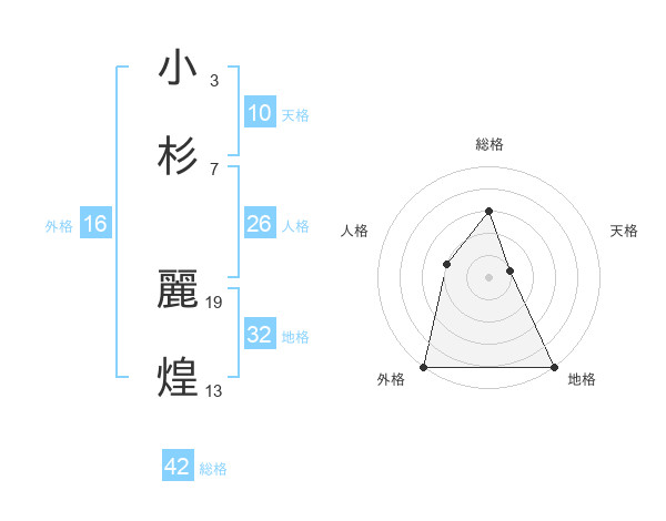 小杉 麗煌さんを姓名の画数から五運を鑑定
