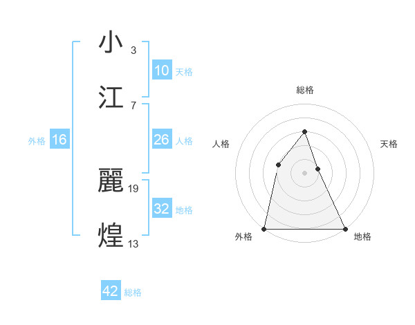 小江 麗煌さんを姓名の画数から五運を鑑定